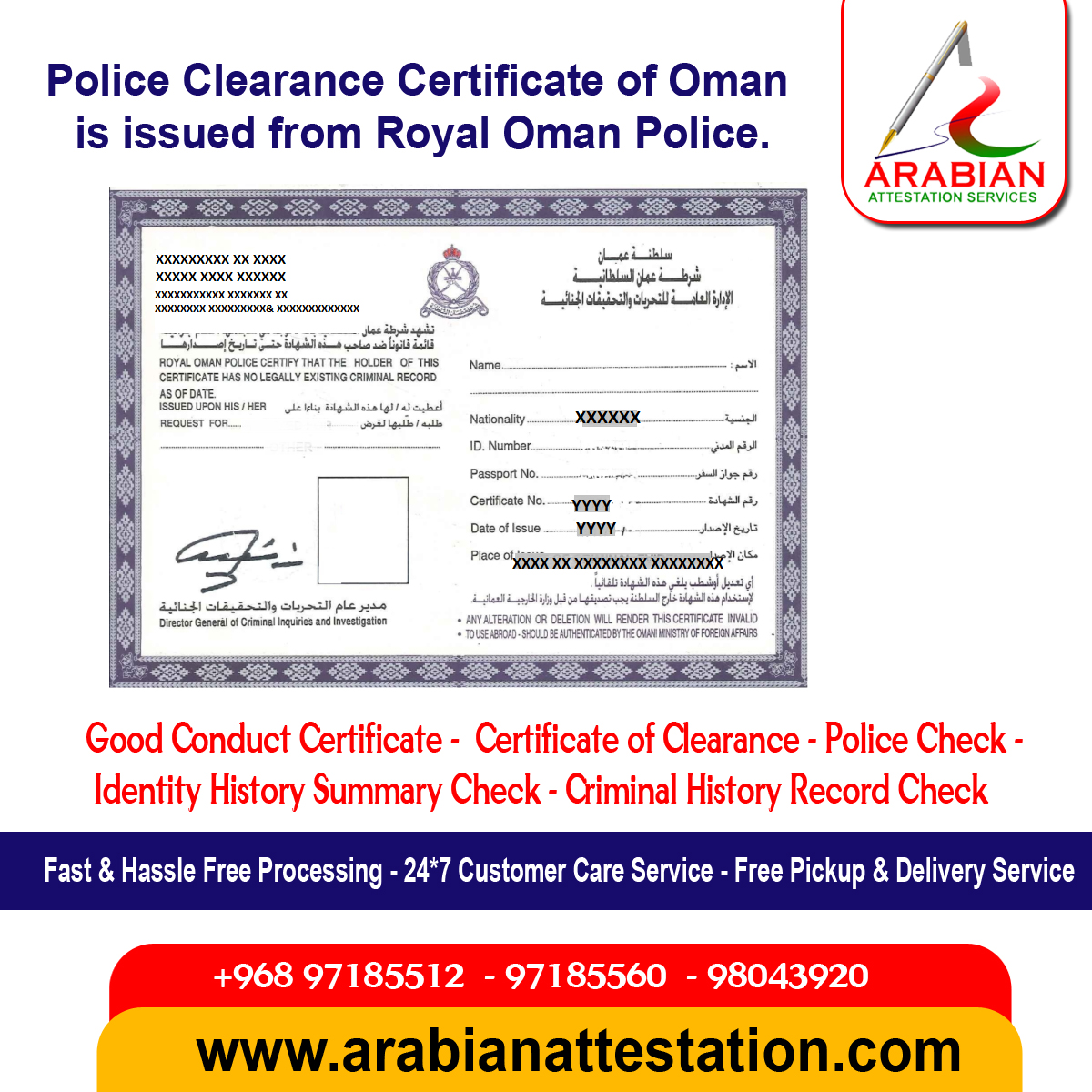 - Police clearance certificate attestation in Oman Muscat