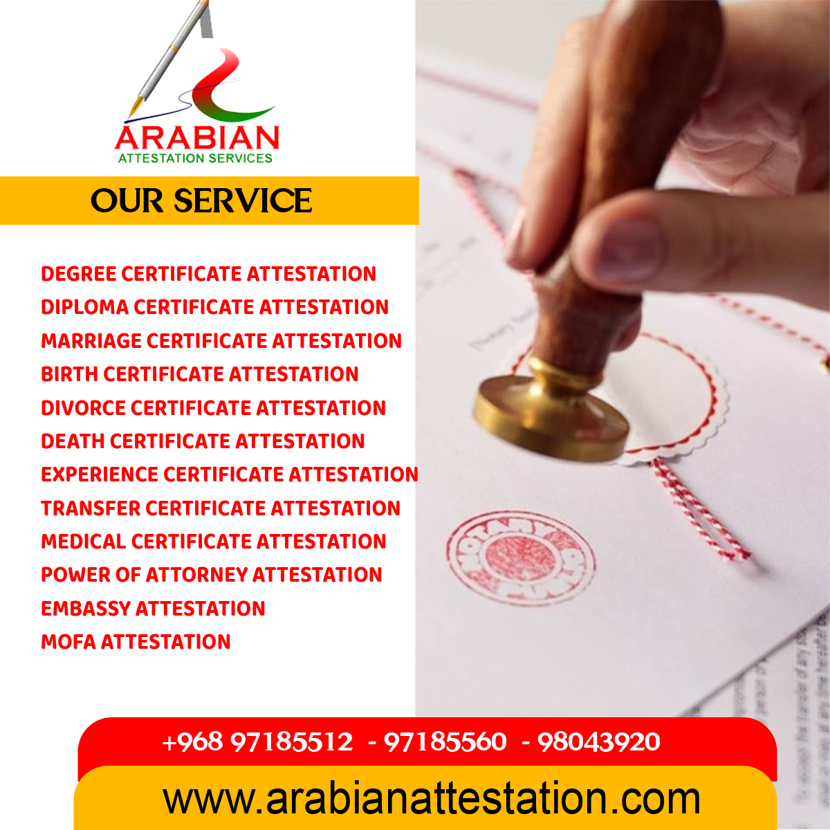 Oman’s No.1 Attestation/apostille Company Arabian Attestation and Fast, Secure & Affordable Attestation Services in Oman, Muscat.